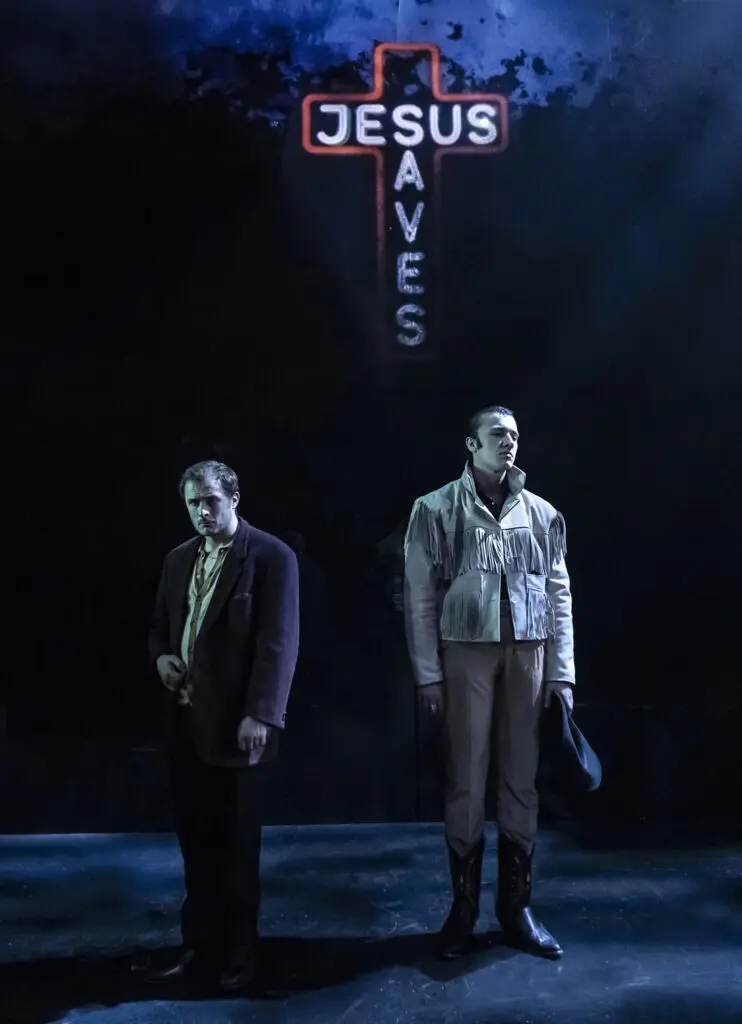 Originally a novel in 1965, then an Oscar-winning film in 1969, Midnight Cowboy now takes its bow as a musical—a choice that proves both inspired and misguided. The songs, penned by acclaimed songwriter Francis ‘EG’ White, are strong in isolation, blending bluesy melancholy with moments of soaring emotion. But they feel clumsily stitched into the narrative, halting the drama rather than deepening it. Worse still, the musical performances (save for Tori Allen-Martin’s striking vocals) are disappointingly flat, the live band muffled as if playing from another postcode.