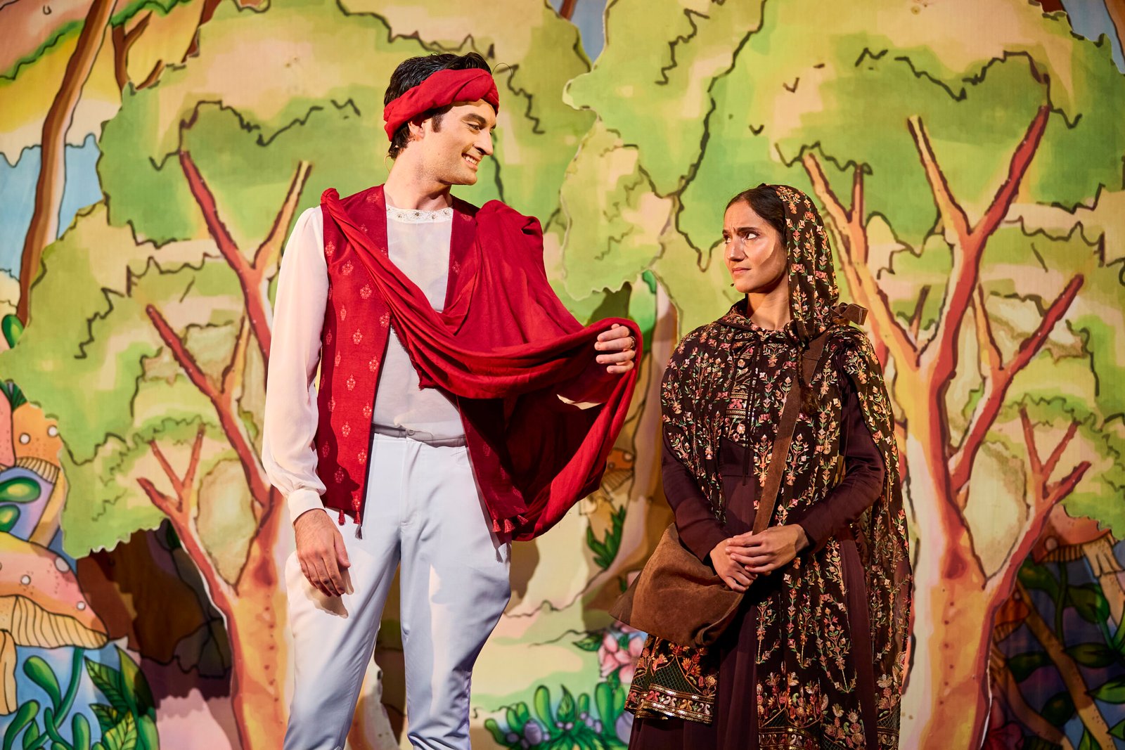 I loved the music: PBN’s songs are very accessible, some partially in Hindi with verses in English but with a lively rhythm. The dance has some modern, as well as the traditional, and there is audience participation using pointed fingers Bollywood style. I thought the singing from Sonya Venugopal and Natasha Bacarese-Hamilton, very high like in the Bollywood movies, was very impressive but the whole ensemble were strong.