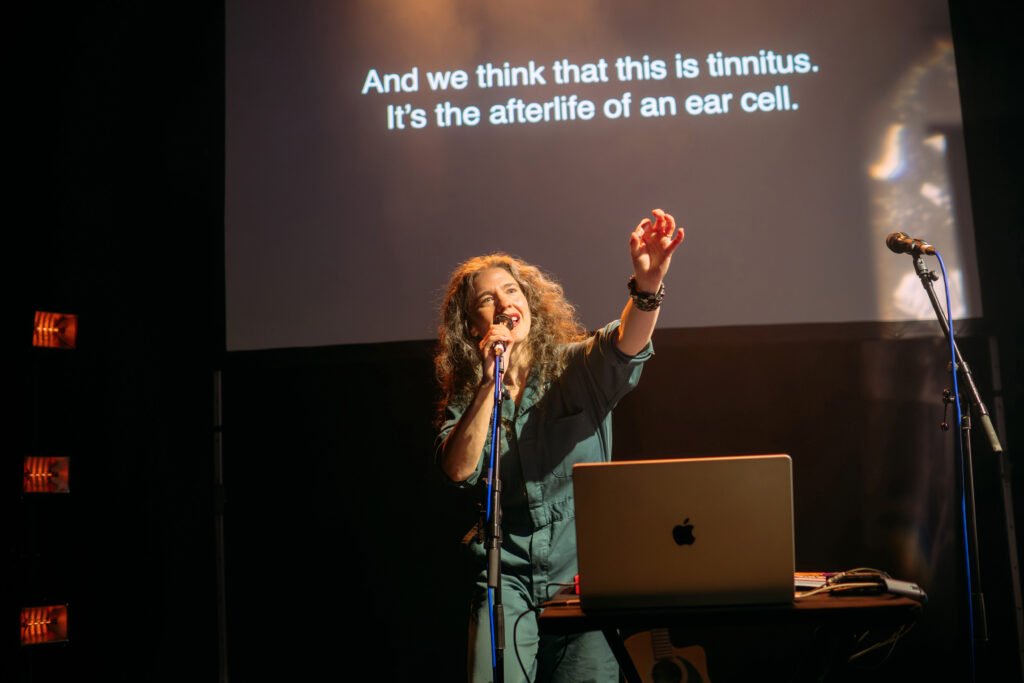 The singing in this show feels rhythmic at times even hypnotic. I hope by reading this review you will know what to expect. I met a man in Edinburgh who had gone to see it on the strength of the five star reviews for the show’s originality. He was disappointed because as a man suffering from tinnitus himself he didn’t appreciate the content of the show being about something he experienced and there being no set or costumes. So it is to do with expectations.