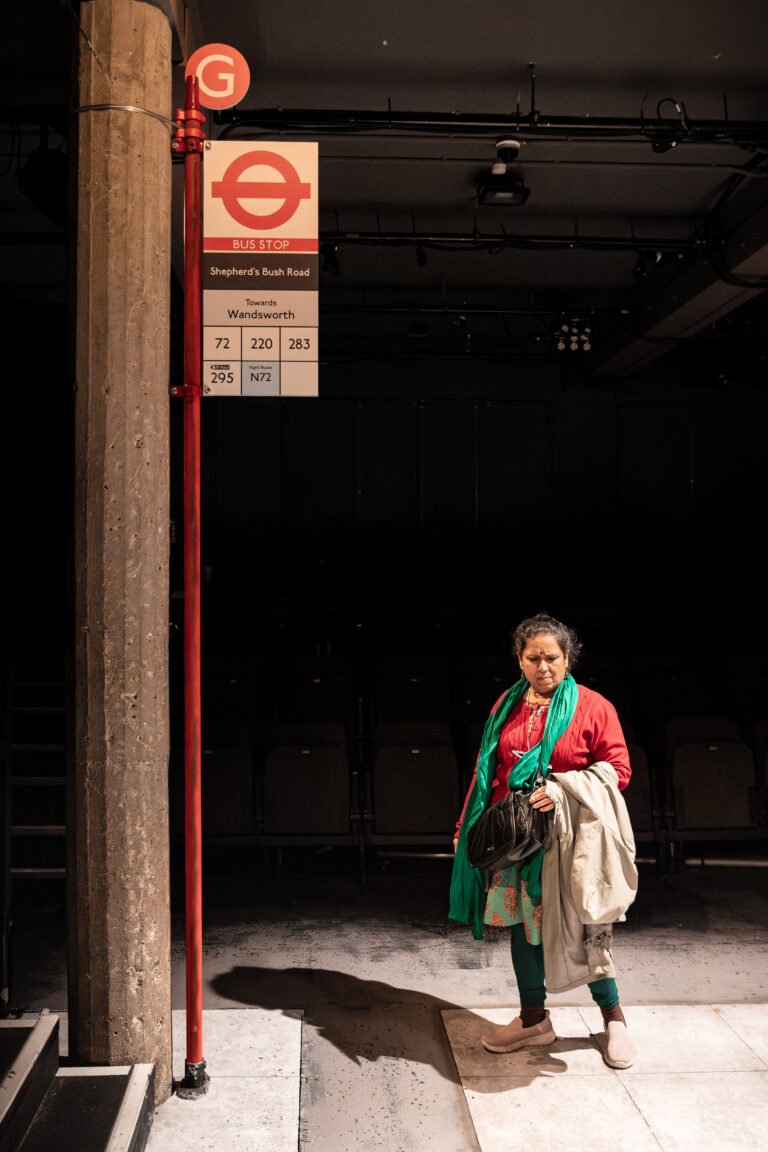 He listens to tapes made by his wife which are in Hindi so I could only listen to the rhythm of her voice. He also mentions his daughter and Hema talks about her son but we get the impression that both are lonely. He waits with her for her bus and the set has an authentic bus stop from Shepherds Bush Road in the direction of Wandsworth.