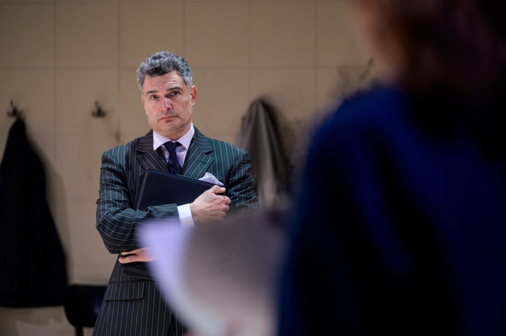 Other players in the industry are revealed, two of the editors, of the Sun, Kelvin MacKenzie (Russell Bentley) and of the Sunday Times Andrew Neil (Alasdair Harvey). Both editors are pulled in to support Murdoch’s operation and Murdoch himself in this play boasts of his newprint pulling power in Australia to bring down governments that oppose him. MacKenzie dresses in loud checks, tie undone and in an witty cameo rejects any stories which are not salacious enough. Although he does give in and not print the picture of Arthur Scargill with the “Führer” headline! Bentley plays a few other parts and significantly that of Murdoch’s son, whose Australian accent is better than the paternal version. It is interesting casting that Brian Cox who featured in HBO’s Succession as the character based on Rupert Murdoch has his son, Alan Cox taking the Rupert Murdoch part here.